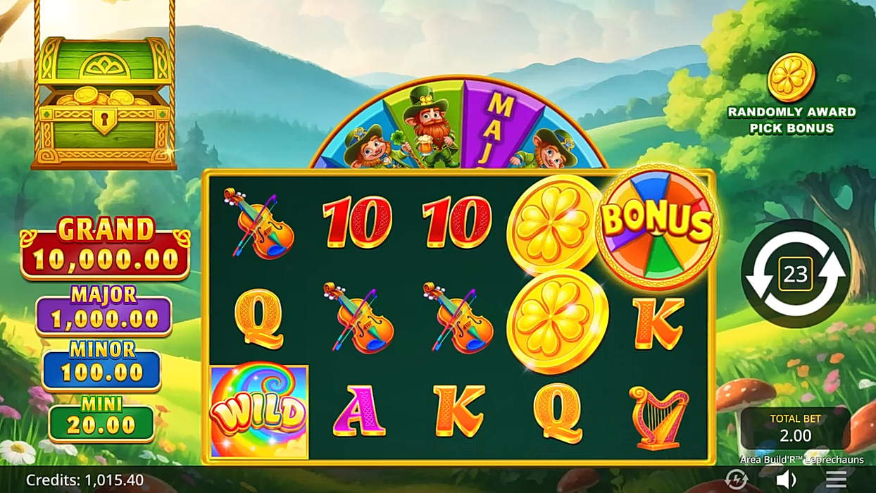 Area Build’R™ Leprechauns blends bright colors, playful animations, and magical characters to create a visually rich Irish world. Each feature—frames, symbols, and leprechauns—is distinct, immersing players in a whimsical environment filled with charm and color.